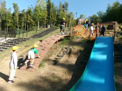 到着した後、トイレ休憩をしながら公園の遊具を使って遊びました。
