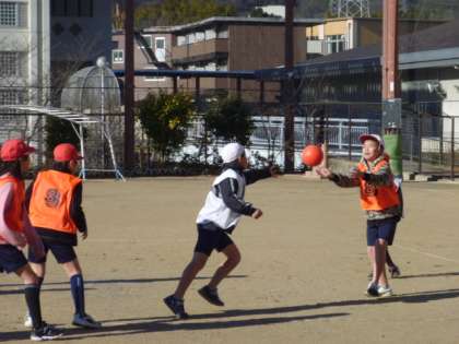 日が当たってきて,雪と氷が解けだし,運動場がぬかるんできてしまいましたが,最後のゲームをしました。