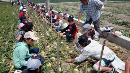咸臨丸で渦潮を堪能した後,淡路島牧場で,乳搾り体験と玉ねぎの収穫をしました。大盛りカレーをしっかり食べて,京都に向けて出発しました。学校到着は予定していた時刻より30分程度早くなりそうです。