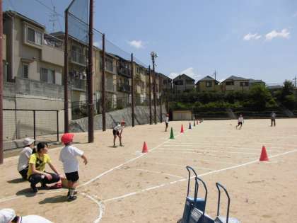 遠くに投げたいあまり地面にボールをたたきつけてしまう子もいましたが、