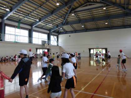 6年生のお兄さん・お姉さんと手をしっかりつないで,いっしょに楽しみました。