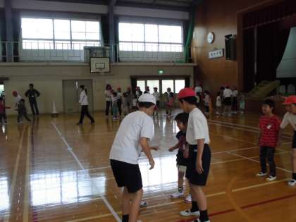 1年生と6年生で,しっぽとりゲーム,どんじゃんけんをしました。