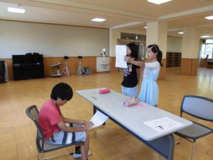 山の家での過ごし方についてのマナーを説明するとき,どうしたらわかりやすくなるか表現を工夫しながら何度も練習する係。
