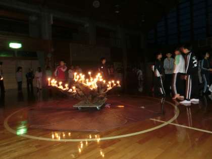 しかし,子どもたちには雨など関係ありません。プレイホールでの活動や,キャンドルファイヤーの取組など元気いっぱいです。