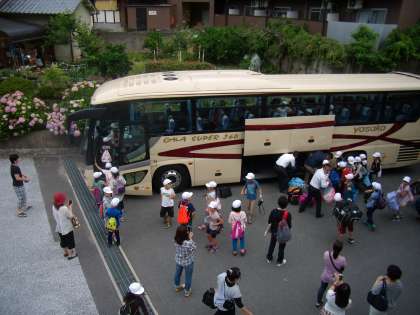 予定通り,8時にバスが出発!2泊3日の野外学習に向けて,元気に両手を振る子どもの姿が見えました。