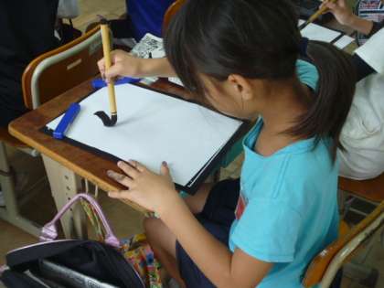 背筋をピンと伸ばして,ゆっくり筆を運び,最後まで集中して書きあげることができました。