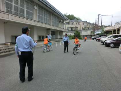 6年生は自転車の免許を取得するために,自転車運転に関する法規と技能のテストがありました。課題を見事クリアした人には,まわりから拍手と歓声があがっていました。