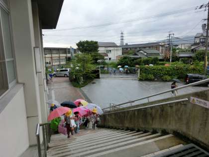 あいにくの天候でしたが子どもたちはとても元気そうです。1年生は,敬老参観日に向けて音楽の学習に取り組んでいました。また,高学年は夏休みの課題についての確認テストに取り組んでいました。