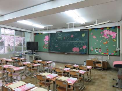教室には入らず,運動場で着任式が始まるまで待ちましょう。