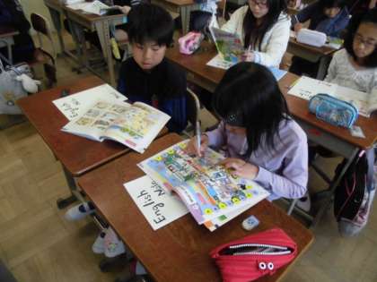 子どもたちの期待がクラス中にあふれていました。教科書で学習内容を確認すると,カラフルなイラストや楽しそうなゲームがたくさんあり,楽しそうな学習に一層胸を躍らせていました。