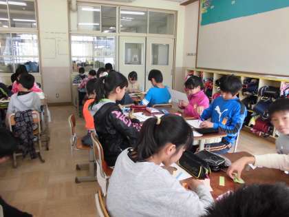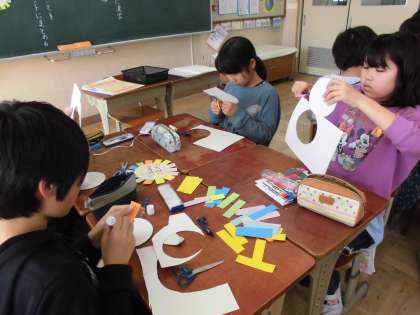 「1年生は,どんな絵がよろこぶかな。」,「漢字は読めへんから,ひらがなで大きく書こう」などと相手意識をもってつくる姿は頼もしかったです。