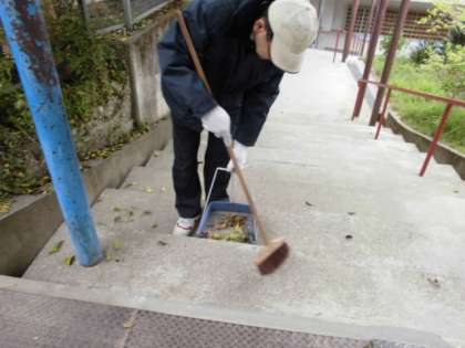 学校にはいろいろなお仕事があります。管理用務員さんは,ひとりで広い校内のすみずみを修繕・整備されています。今日も強い風で吹きたまった落ち葉が,あっという間にきれいになっていましたよ。