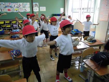 1年生は来週から参加する予定なので,しっかり覚えられるように教室で練習をしています。