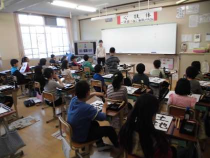 今年度は,5年生の書写を3年生の先生が指導します。