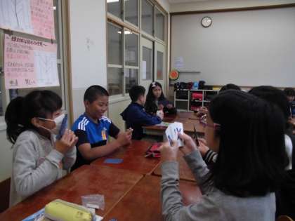 またアルファベットカルタをしたり,ポインティングゲームという活動をしたりしました。アルファベットの大文字や小文字に慣れ親しむことができました。