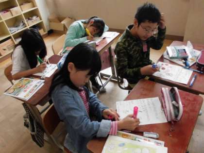 子どもたちは,大切な家族に心を込めて招待状をかいています。