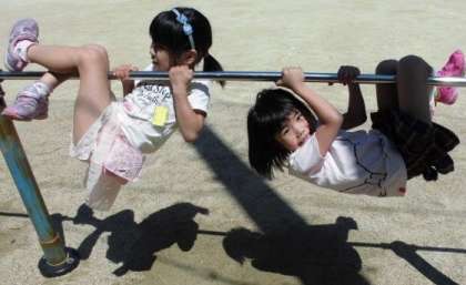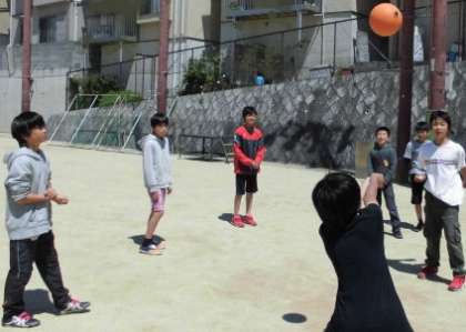 運動場では高学年も低学年も,思い思いに遊んでいます。