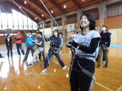 5年生のみなさん,楽しみですね。先生たちがしっかりロープを操作するので,安心してクライミングにチャレンジしてくださいね。