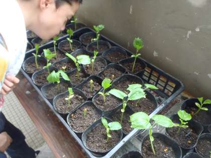 理科の学習でツルレイシ(ゴーヤ)を育てています。
