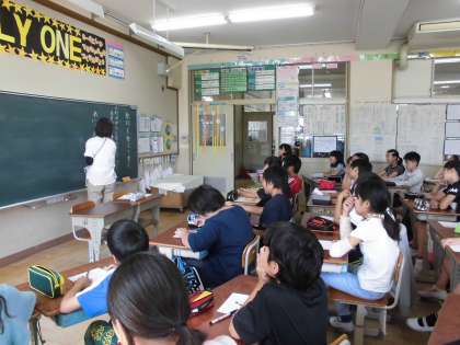 「いつも1年生には,字を書く時いつもありさんが歩くくらいの速さでゆっくり書こうねと言っているよ。」と優しく教えてくださり,6年生も新鮮な気持ちで学習に取り組んでいました。