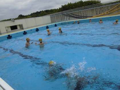 グループでつながったり、ペアで水中言葉遊びをしたり、グループで確かめ励ましあいながら、楽しく学習をしています。