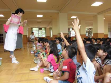 歯科衛生士の稲本先生に来ていただき,歯のことや,虫歯を予防するための方法などについて,詳しく教えていただきました。