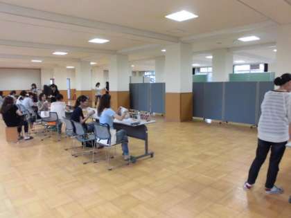 大枝地域の一大イベント「大枝なつまつり」(7月30日)が近づいてきました。チケット販売の準備が整った会場の外では,早くから子ども達が行列を作っていました。どれだけ楽しみにしているか,よくわかります。