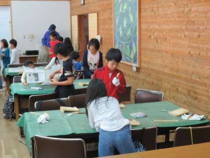説明の後は,班のみんなで協力して,道具を取りに行きます。