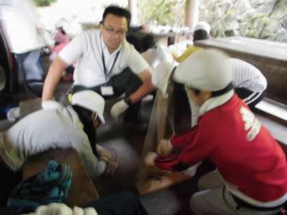 あいにくの雨で,湿度も高く,ひおこしには不利な日となりました。それでも,挑戦は続きます。