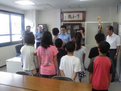 先日,交通安全子供自転車京都府大会があり,大枝小学校から8名の児童が出場しました。今日は,その8名が,西京警察署の署長室で精励賞の表彰を受けました。緊張した面持ちで,一人一人,賞状を受け取りました。