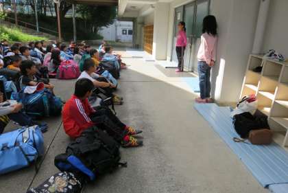 体育館前で解散式をし,元気に「さようなら」をしました。