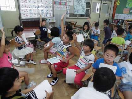 聞いた側は,「どうしてですか。」と質問をしたり,「すごいですね。」「わたしもやってみたいです。」などの感想を上手に言ったりすることができました。