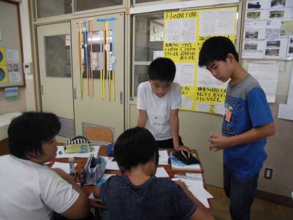 これまでに学習したことをもとに,班の仲間と協力してかき方を考え交流しました。
