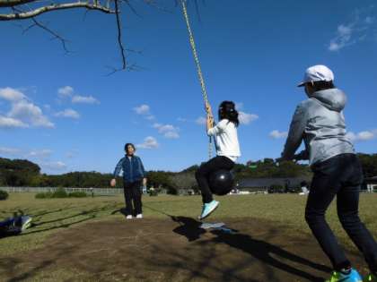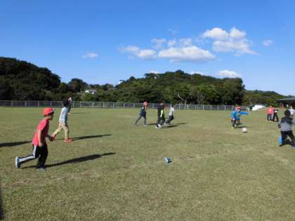 朝はびゅんびゅん吹いていた風が弱まり,絶好の活動日和になりました。今日の午前中は,思い思いの遊びや活動をしています。