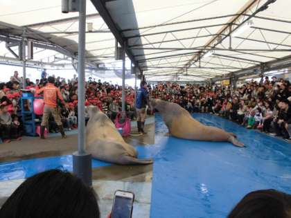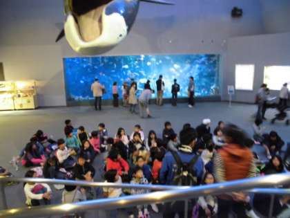 水族館では,海の生き物をじっくり観察したり,ショーを見たりしました。セイウチのショーは参加型で,笑いがいっぱいでした。館内のレストランで昼食をとってから帰京しました。