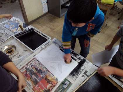 4年生になり初めて彫刻刀を使っての版画に取り組んできました。