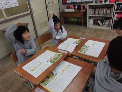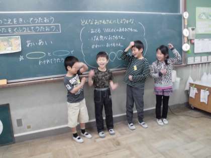 音楽の時間,「あいあい」の歌を歌っています。
