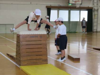 ねらい1では“今できる跳びこし方で,とび箱の高さや向き,ふみ切り板の距離”,ねらい2では,“もう少しがんばればできそうな跳びこし方”に挑戦しています。
