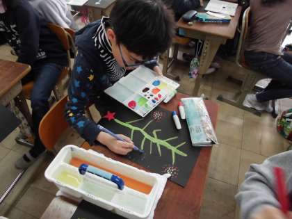 図画工作科で自分だけの花を描きました。