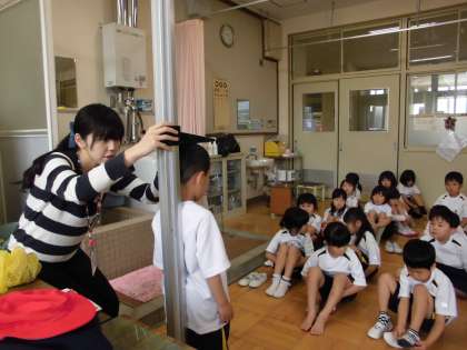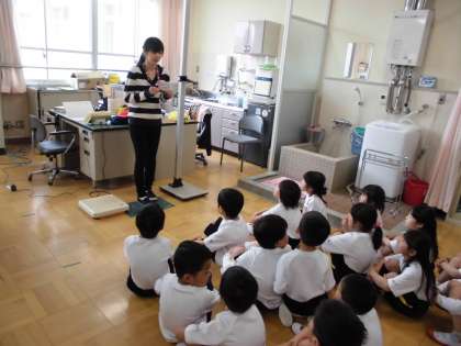 学校探検で保健室を見ましたね。今日は,その保健室で身体計測をしました。保健室の先生のお話をしっかりと聞き,自分の番が来るまで静かに待つことができました。