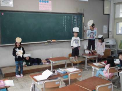 参観授業で,国語科「ふきのとう」の音読発表会をしました。