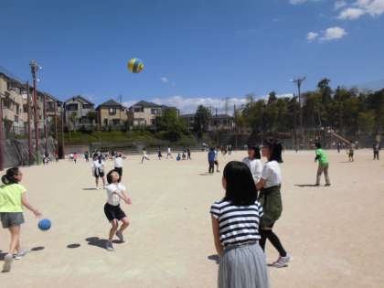 バレーボールをしたり,雲梯で遊んだり,手で投げてサッカーのPKのような遊びをしたりと楽しんで過ごしていました。