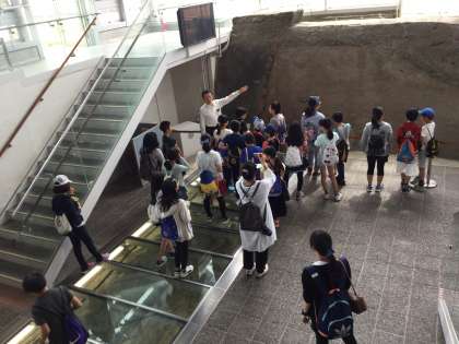 修学旅行のメイン北淡震災記念公園に来ました。語り部さんのお話をしっかり聴き、野島断層などの見学も熱心にしています。