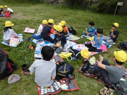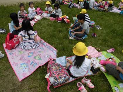 クラス写真を撮った後,お待ちかねのお弁当タイム。