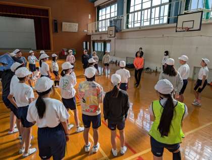 これは、スポーツ庁の「アスリート派遣等による体育授業等の充実・高度化の促進事業」によるもので、日本トップクラスで活躍されたアスリート人材・パラアスリート人材等が学校を訪問され、競技経験から得られた知見や体験を活かした技術指導やスポーツの価値等を伝える体育授業を行ってくださる事業です。
