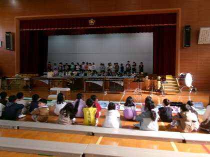 写真は、1年生が演奏をしていて、2年生が鑑賞しているところです。