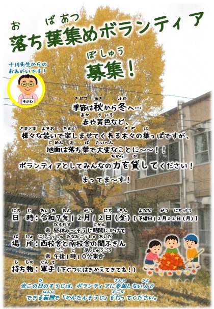 12月11日(木)落ち葉集めボランティア大募集!