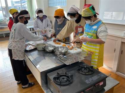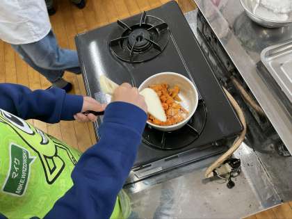今日は、地域の方に来ていただき、地域の特産物の柿を使って柿ジャムを作りました。