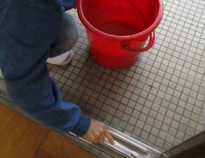 キレイになる喜びを知っている子どもたちは、汚れたところを見つけてはハブラシやぞうきんを使ってきれいにしています。