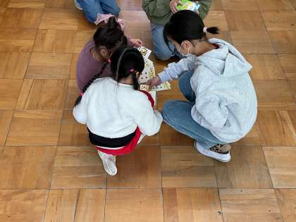 教室でババ抜きをするグループです。ババはどこかな(写真下)